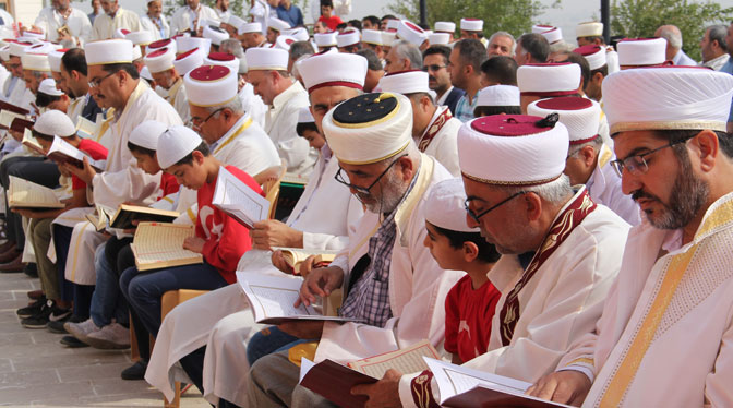 Hatay’ın Kırıkhan ilçesinde 400 imam ve hafız Beyazid-i Bistami Türbesinde bir araya gelerek Barış Pınarı Harekatına katılan askerler için Fetih Süresi okudu.