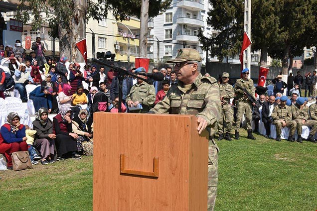 İl Jandarma Komutanı J. Alb. Turgay Aras ise yaptığı konuşmada, ‘’Biraz önce milletimizin ve bağımsızlığımızın sembolü olan şanlı bayrağımızın gölgesinde; anne, baba, eş ve yakınlarınızın huzurunda, gerektiğinde vatan, cumhuriyet ve vazife uğruna seve eve canınızı feda edeceğinize namus ve şerefiniz üzerine ant içtiniz. İçtiğiniz bu ant; vatan sevgisi, vazife, şeref ve namus anlamında olup aynı zamanda kahraman bir güvenlik korucusu olduğunuzun kabul merciidir. Hürriyet ve bağımsızlığımızın, toprak bütünlüğümüzün, laik, demokratik ve sosyal bir hukuk devleti olan Türkiye Cumhuriyeti’nin inançlı, kararlı bir savunucusu ve her an göreve hazır olarak birlik ve beraberlik ruhu içinde yeminize bağlı kalıp emniyet ve asayişi sağlayacak ve her türlü şer odaklarına karşı mücadele edeceksiniz. Atatürkçü düşünce sistemi ışığında, tüm aşırı akım ve politik düşüncelerin dışında, kanun talimat ve hiyerarşik nizama bağlı, karşılıklı sevgi ve güvene dayanan bir disiplin ruhu ile işbirliği içinde çalışarak yurdumuza hizmet edeceksiniz.’’ dedi.