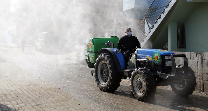 Hatay’da ve Kırıkhan’da artan sayılara bir takım tedbirler almak anlamında sokağa çıkma yasağını da fırsat bilerek cadde ve sokakları hijyen bir şekilde temizliyoruz. Buradaki çalışmaların ardından mahalle aralarında da holderle dezenfekten çalışmamız devam edecek.