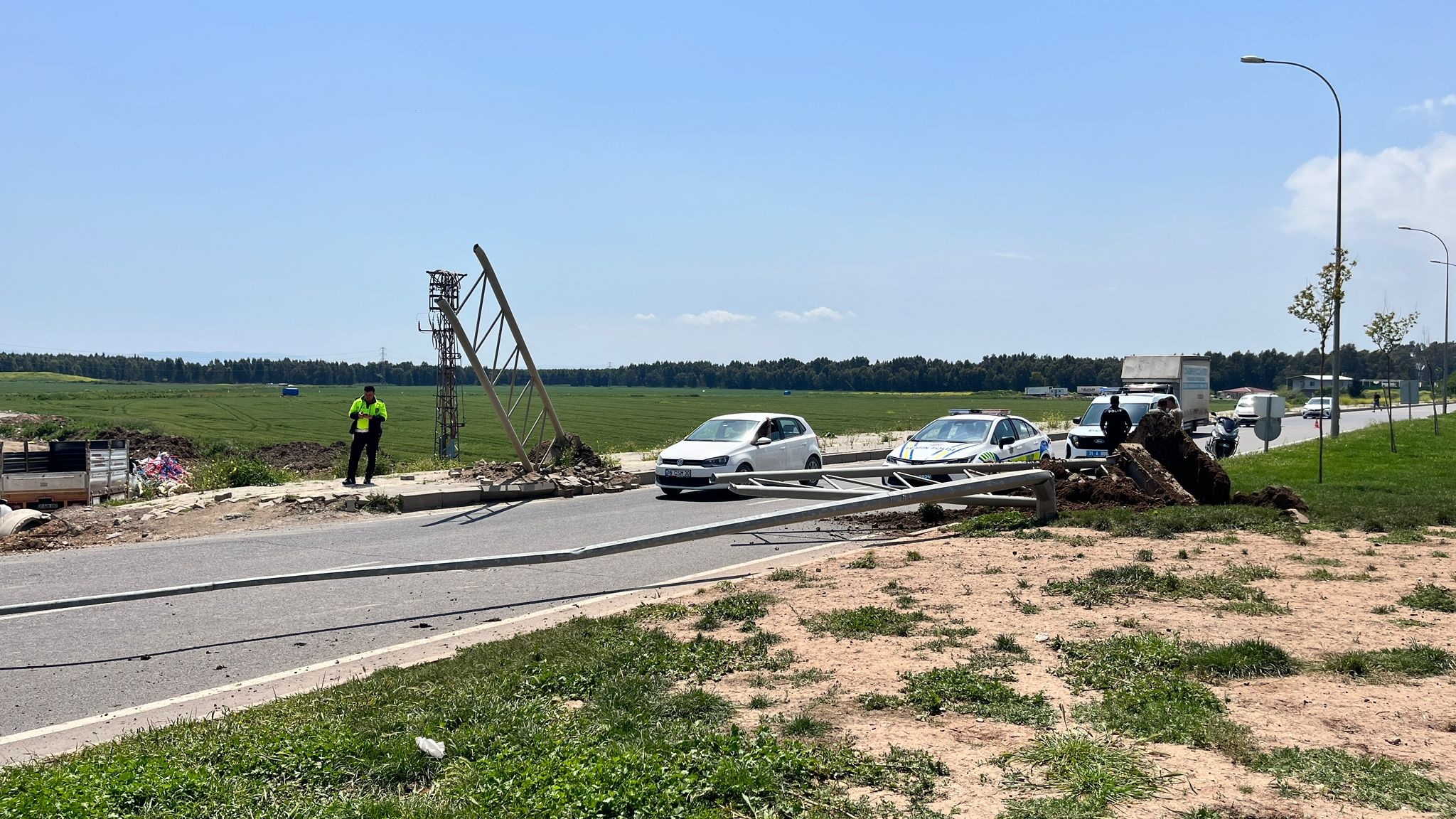 Kırıkhan ilçesi Özyörük Mahallesi’nde seyir halinde olan 31 ATT 401 plakalı kamyonun sürücüsü, damperini açık unuttu. Açık konumdaki damper, mahalle yolunda bulunan Elektronik Denetleme Sistemi (EDS) direklerine çarparak direklerin devrilmesine neden oldu.