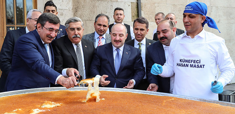 Bakan Varank’ın sunumu ve bazı milletvekillerinin konuşmalarının ardından komisyona yemek arası verildi. Aranın ardından Hatay milletvekilleri, komisyon üyelerine Antakya künefesi ikram etti. Meclis bahçesindeki ikrama Bakan Varank’ın yanı sıra TBMM Plan ve Bütçe Komisyonu Başkanı Cevdet Yılmaz, Komisyon Sözcüsü Abdullah Nejat Koçer, AK Parti Hatay milletvekilleri Hacı Bayram Türkoğlu, Hüseyin Yayman, Abdulkadir Özel, CHP’li Serkan Topal, TÜRKPATENT Başkanı Cemil Başpınar, ile Antakya Ticaret ve Sanayi Odası Başkanı Hikmet Çinçin katıldı. Varank, beraberindekilerle birlikte Antakya’dan getirilen künefeye şerbetini döktü, daha sonra da milletvekillerine ikram etti.