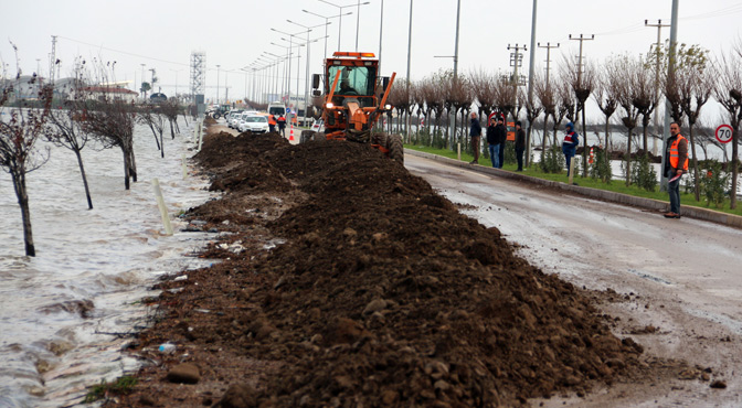 Karayolları ekiplerinin yol kenarına toprak dökerek set çektiği yolun havaalanı giriş tarafının bir bölümü kapatılırken Jandarma Trafik ekipleri tarafından tek yönlü kontrollü olarak trafik akışı sağlanıyor.